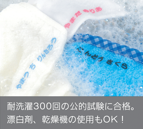 (※洗濯300回の公的試験に合格) 洗濯300回の検査証明書はコチラ(日本紡績検査協会にて実施) アイロンで簡単に、ふっくらとかわいい立体文字が転写されます。