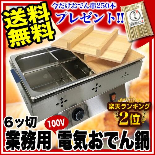 業務用 電気 おでん鍋 6ッ切 と おでん串のセット【電気式おでん鍋 電気おでん鍋 おでん鍋 電気 業務用おでん鍋 おでん保温庫 おでん保温器 おでん保温機 おでん保温ケース鍋 おでんウォーマー 】