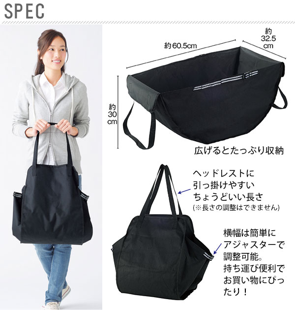ITEM DETAILS商品名ハンモックバッグ商品説明車内のヘッドレストに引っ掛けるだけ!走行中の荷崩れの心配ナシ!いつものお買い物でのエコバッグとしてはモチロン、キャンプやバーベキュー、海水浴などのアウトドアレジャー、車中泊など、たくさんの荷物を運ぶときに便利ですね! カラー≪全1色≫ブラック素材本体/ポリエステル(PVCコーティング)アジャスター/ABS樹脂 材質など生産国中国製サイズ[縦]約32.5cm×[横]約60.5cm×[高さ]約30cm※サイズは当店平置き実寸サイズです。